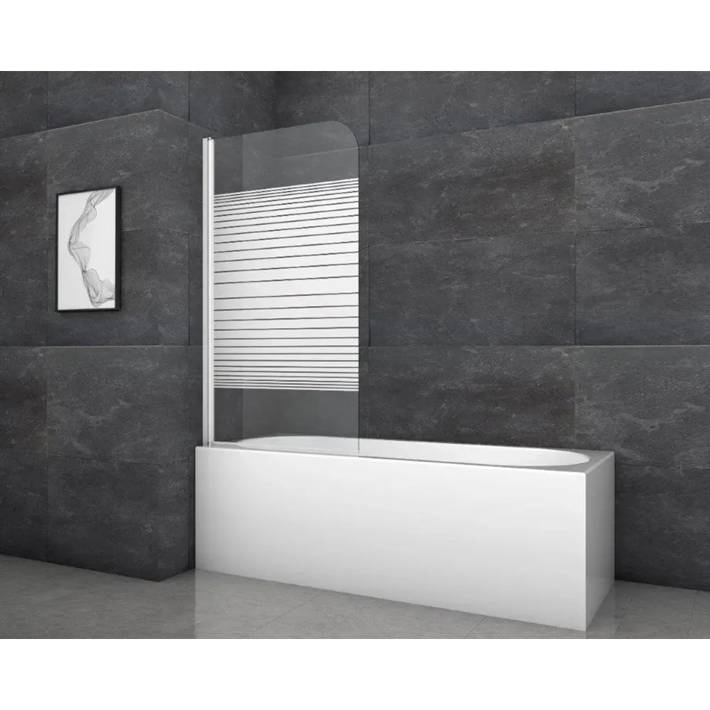 Aurlane Zložljiva stena za kopalno kad White Stripes 1 bela 80 x 140 cm 1-krilna