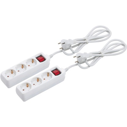 Električni razdelilnik s 3 vtičnicami in stikalom Komplet 2 kosov Bel