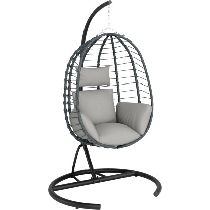 - Udoben viseči stol z jeklenim ogrodjem antracitne barve, zložljiv in odporen proti vremenskim vplivom, idealen za uporabo na prostem