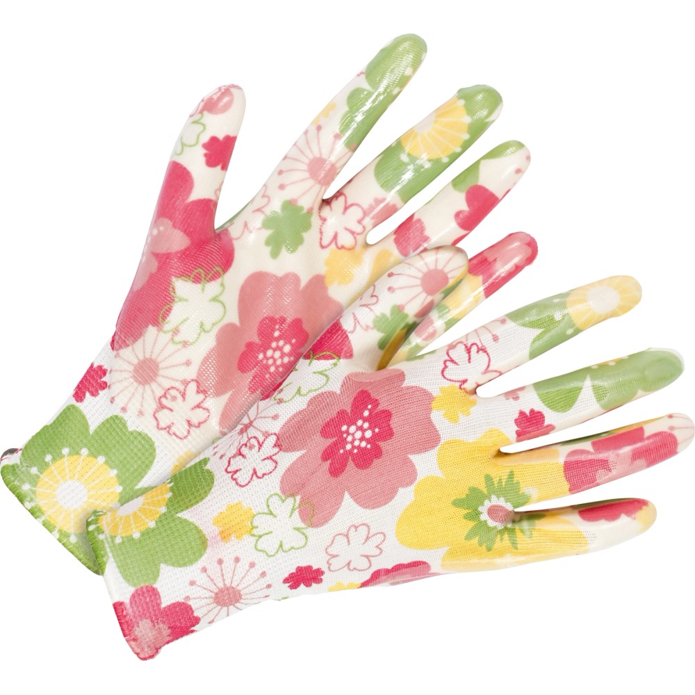 Vrtne rokavice Delni nitrilni premaz Bele roza Velikost 8 2x Komplet